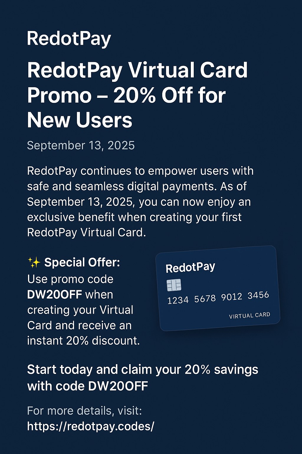 RedotPay Virtual Card Promo – 20% Off for New Users